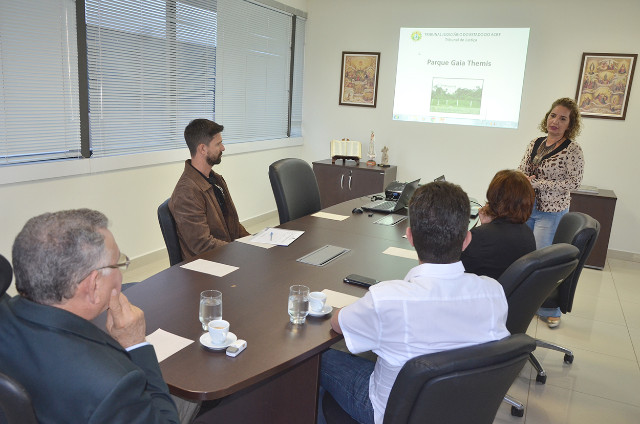 Em um primeiro momento, as autoridades participaram de uma apresentação do projeto de implementação da infraestrutura do Parque Ecológico, que será construído na Área de Preservação Ambiental (APA), afetada à Administração do TJAC por meio do Decreto Estadual nº 4.234/2016.