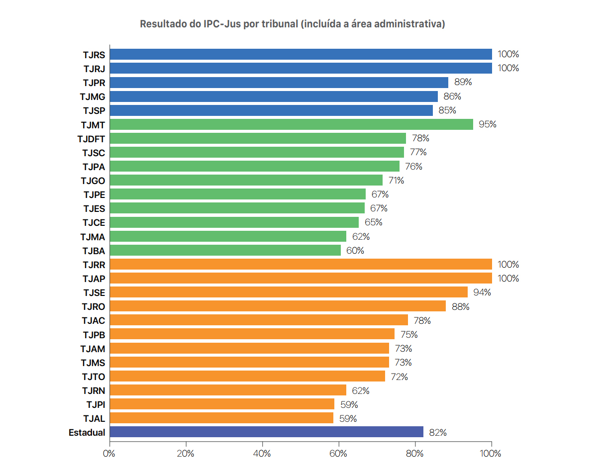 Nesse sentido, o Tribunal de Justiça do Acre obteve 78% no IPC-Jus, superando outros sete tribunais de pequeno porte (de um total de 11), e mais 8 tribunais de médio porte (com estrutura e orçamento bem maiores).