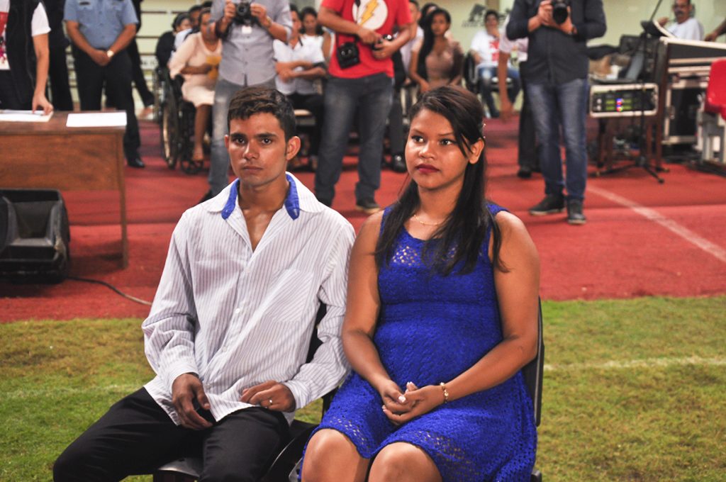 Já Deocleiciano Pereira de Souza, 20, e Thalyta de Oliveira Costa, de 19 anos, foram o casal mais novo. Os jovens se conhecem desde criança, mas vivem juntos tem um ano. O anseio de viverem ‘unidos para sempre’ foi firmado durante o evento. Segundo eles, longas filas foram enfrentadas para poderem realizar a inscrição para o casamento. “Valeu a pena, pois participar dessa cerimônia era o que nós mais queríamos”.