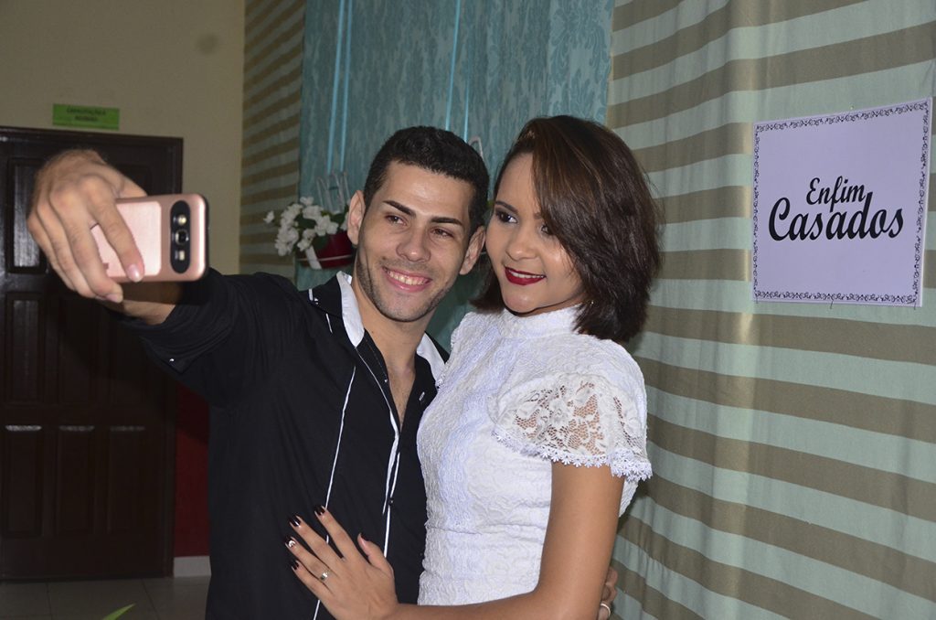 Eles e outros 650 casais disseram o aguardado SIM coletivo, acompanhado de abraços sinceros, beijos afetivos, mãos entrelaças pelas alianças, e muitas fotos, inclusive selfies, que registraram na memória e história o momento marcante.