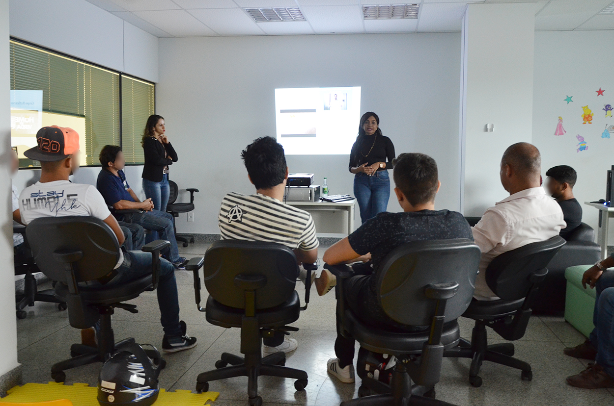 Nesta quarta-feira (29), o grupo reflexivo teve como tema a expressão “Homem de Verdade”. A psicóloga Ane Kelly Feitosa e a assistente social Sionete de Sousa da Vara de Proteção à Mulher da Comarca de Rio Branco atenderam um grupo de cerca de dez homens.
