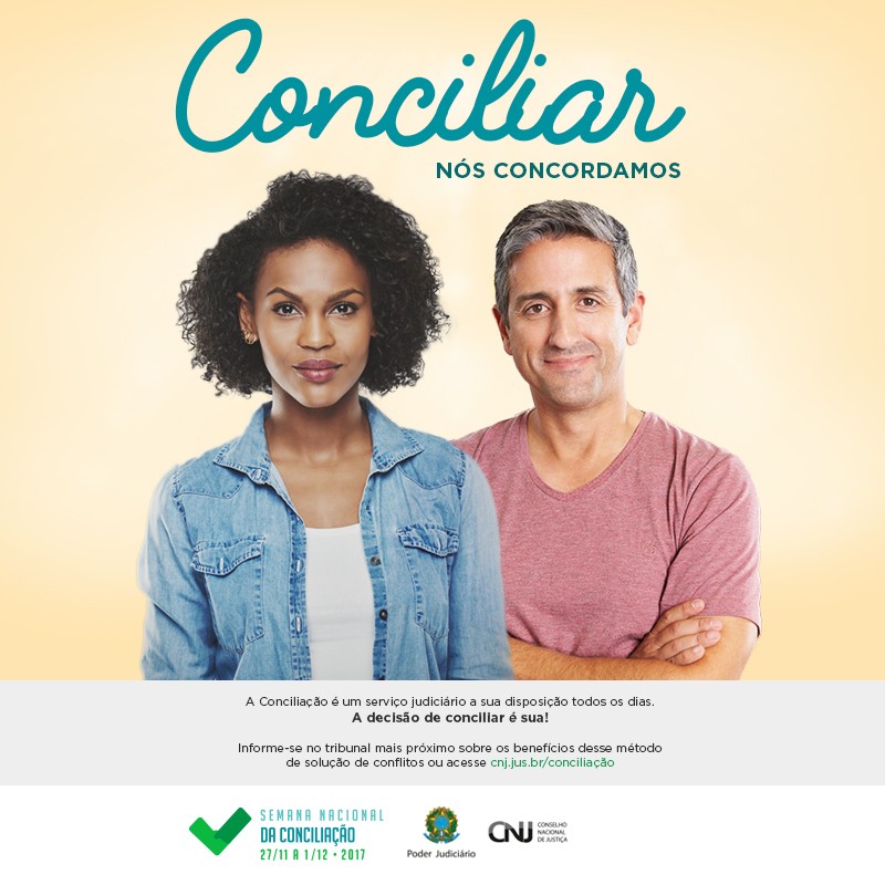 O CNJ adotou o seguinte slogan para este ano de 2017, “Conciliação é uma solução permanente! Está disponível todos os dias no tribunal. A decisão de conciliar é sua!”.