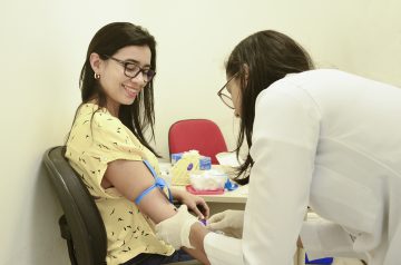 Ao procurarem o Espaço Saúde, os profissionais preencheram uma ficha com dados pessoais e a coleta de 5 ml de sangue. Não era preciso estar em jejum para efetivar o cadastro.