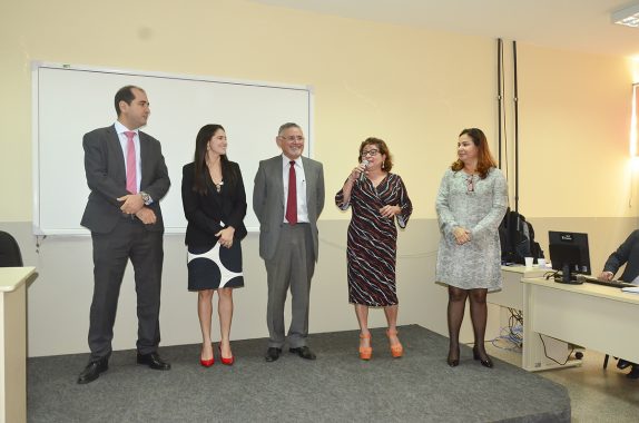Membros da Administração do TJAC, os desembargadores Denise Bonfim (presidente), Francisco Djalma (vice-presidente) e Waldirene Cordeiro (corregedora geral) estiveram presentes na abertura dos trabalhos, que se estendem até quarta-feira (7), na sala de aula da Escola do Poder Judiciário (Esjud).