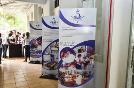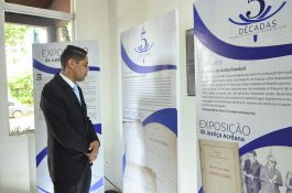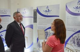Após as falas, as autoridades visitaram a exposição, recebendo as explicações da servidora Ana Lúcia, que é historiadora e atua na Gerência de Acervos (Geace).