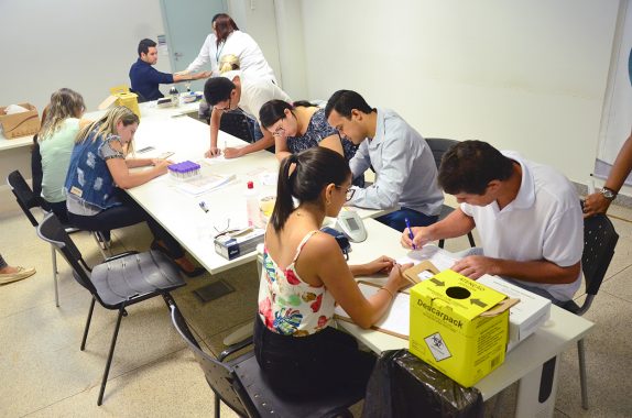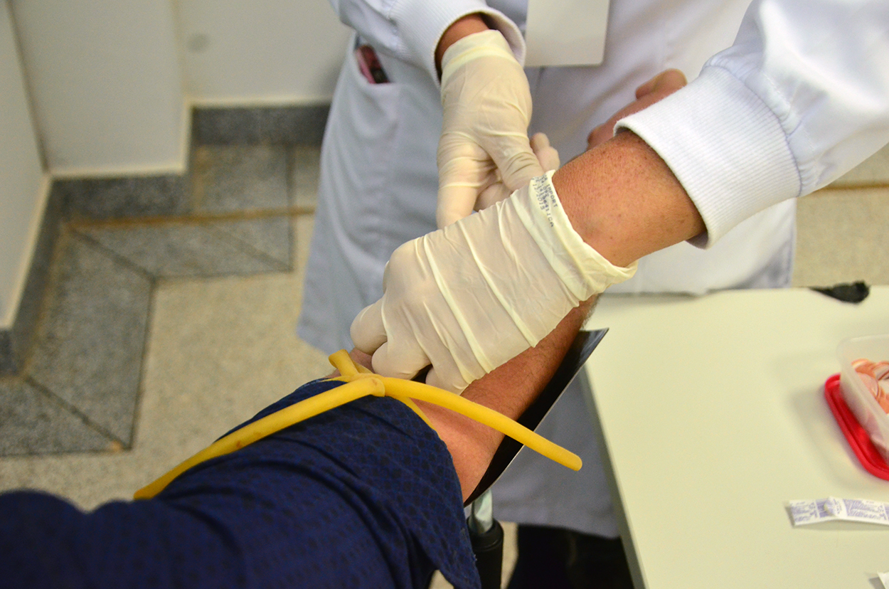 Os voluntários preenchem um formulário com dados pessoais e são coletados cinco mililitros de sangue para efetuar o cadastro.