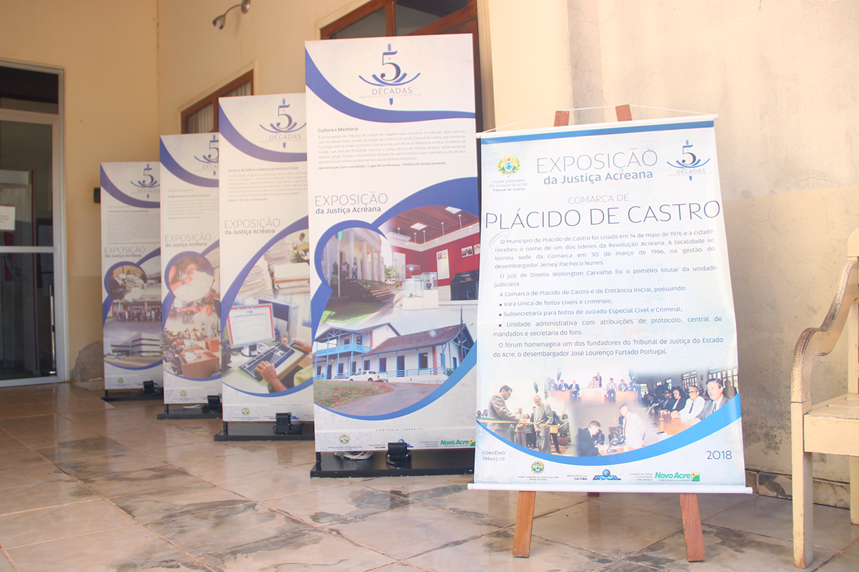 Com o objetivo de destacar a história da Justiça Estadual, sobretudo no que diz respeito à defesa da democracia e garantia dos direitos dos cidadãos, a “Exposição 5 Décadas da Justiça Acreana” aportou, na manhã desta terça-feira, 8, na Comarca de Plácido de Castro. A solenidade de abertura, conduzida pela presidente do Tribunal de Justiça do Estado do Acre (TJAC), desembargadora Denise Bonfim, aconteceu no Fórum Desembargador José Lourenço Furtado Portugal.