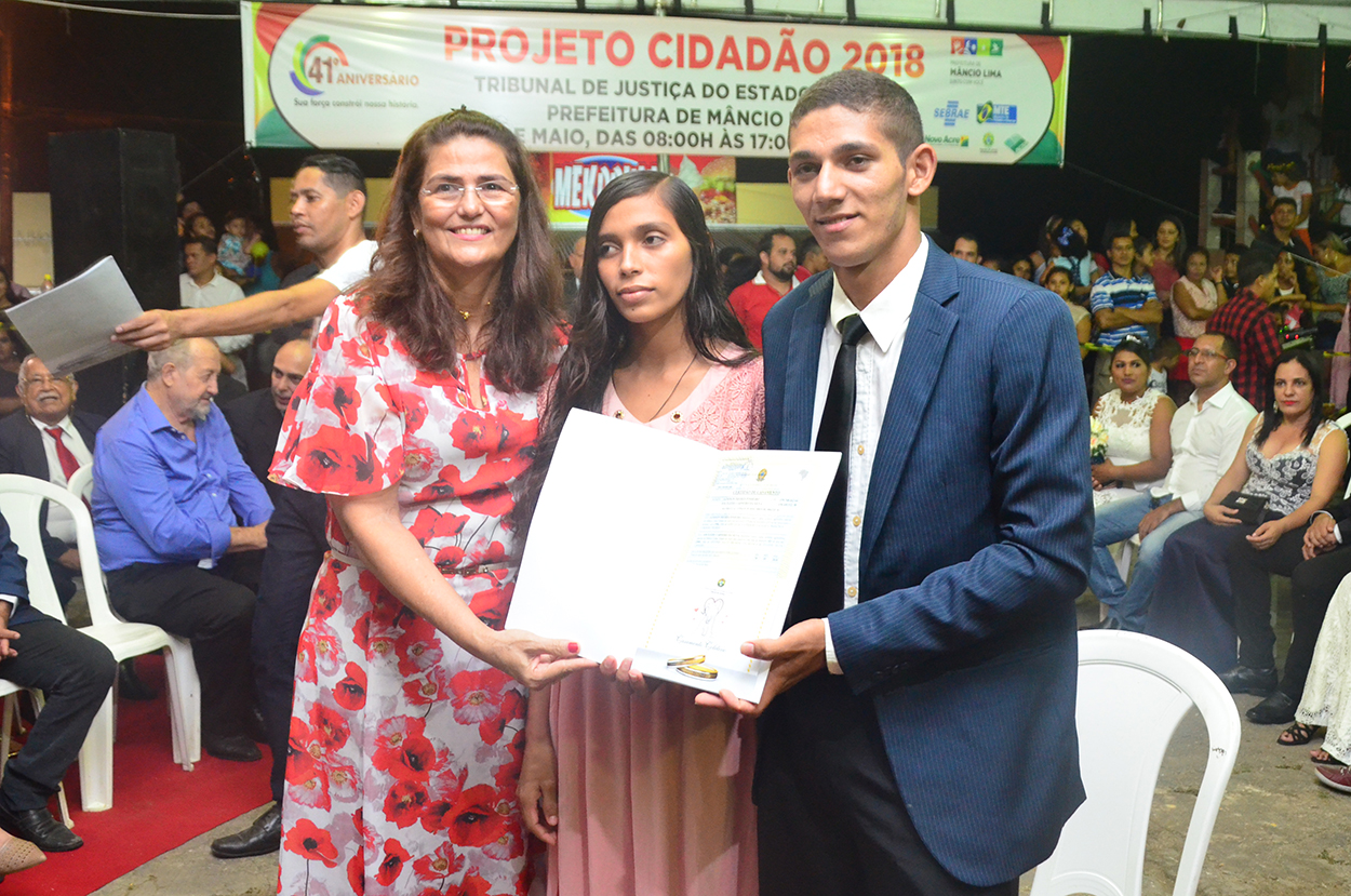 Em clima de muita festa, o Tribunal de Justiça do Acre (TJAC) encerrou, com o já tradicional Casamento Coletivo e com a presença da desembargadora-presidente da Corte da Justiça Estadual, Denise Bonfim, na noite da última quarta-feira, 30, mais uma edição do Projeto Cidadão no interior do Estado.