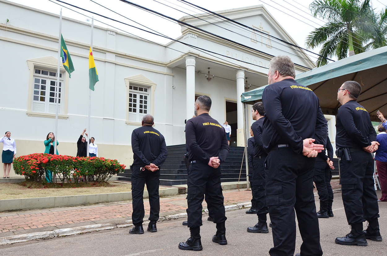 Para celebrar a data, um ato cívico foi realizado, nesta quinta-feira (14), no Palácio da Justiça, local símbolo do nascimento do Poder Judiciário Acreano. O evento reuniu diversas autoridades da Justiça, do Executivo, e servidores que prestigiaram o hasteamento das bandeiras do Brasil e do Acre, ao som do Hino Nacional, interpretado pela banda da Polícia Militar do Estado do Acre.