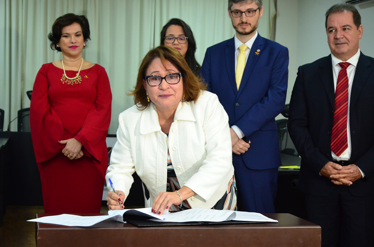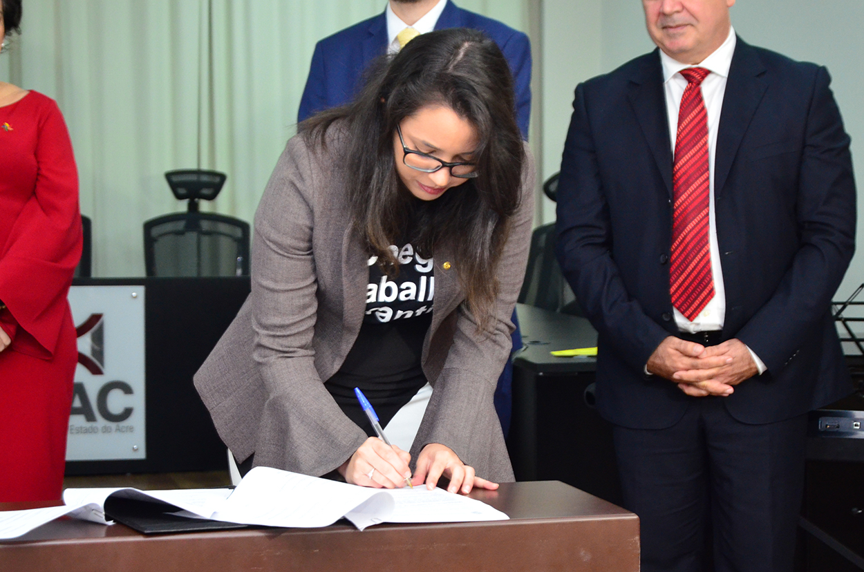 A presidente do Tribunal de Justiça do Acre (TJAC), desembargadora Denise Bonfim, assinou, na manhã desta terça-feira (19), Termo de Cooperação Técnica, cujo objetivo é a qualificação e desenvolvimento pessoal e profissional de adolescentes em situação de vulnerabilidade social, sobretudo usuários do Sistema Socioeducativo do Estado do Acre e da cidade de Rio Branco.