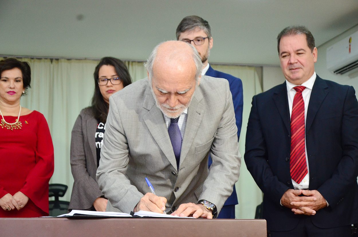 O governador do Acre, Tião Viana, a prefeita de Rio Branco, Socorro Neri, a procuradora-geral de Justiça, Kátia Rejane, e os demais representantes das instituições e órgãos que integram a cooperação técnica também assinaram o termo durante o ato no MPAC.