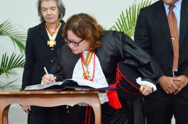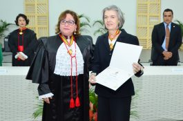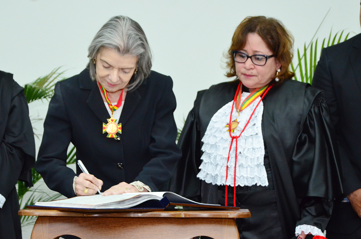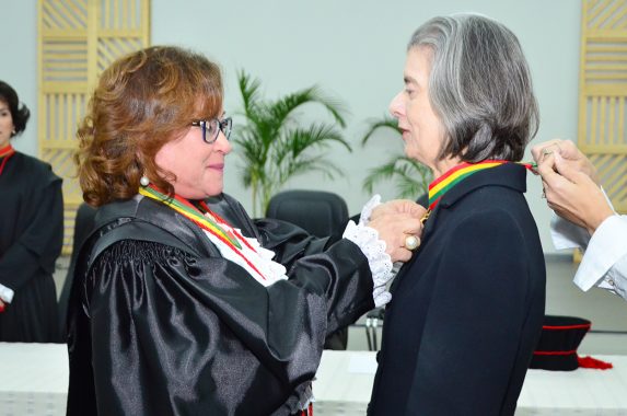 Ao conferir o Colar do Mérito Judiciário à ministra Cármen Lúcia, a desembargadora-presidente do TJAC asseverou que a comenda concedida traduz o agradecimento do Tribunal de Justiça do Acre pela dedicação da presidente do STF e CNJ à causa da Justiça e pela forma exitosa como a ministra homenageada exerce a magistratura.
