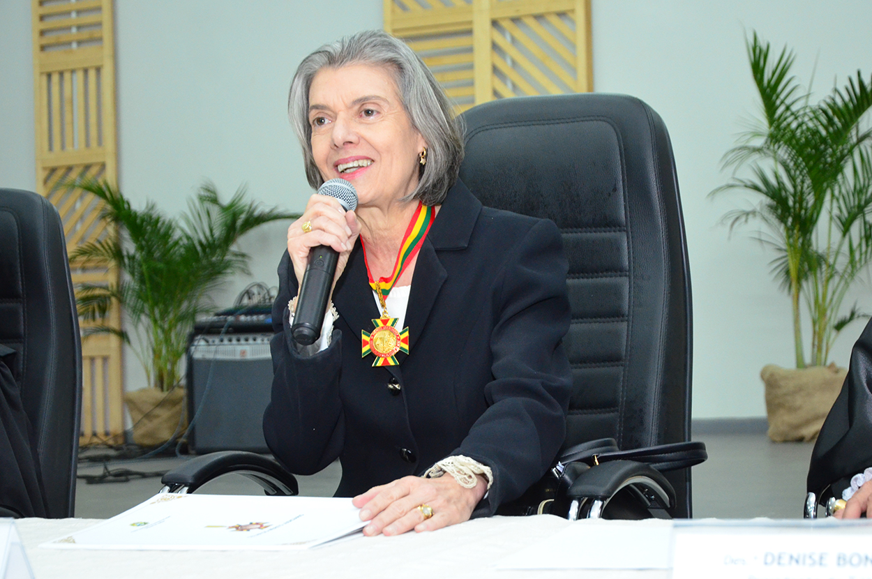 “O seu zelo pela atividade judicante, ministra Cármen Lúcia, faz de seu legado um exemplo de dignidade e cultura, a inspirar nosso orgulho e gratidão, sentimentos que esta comenda simboliza”, afirmou Denise Bonfim.