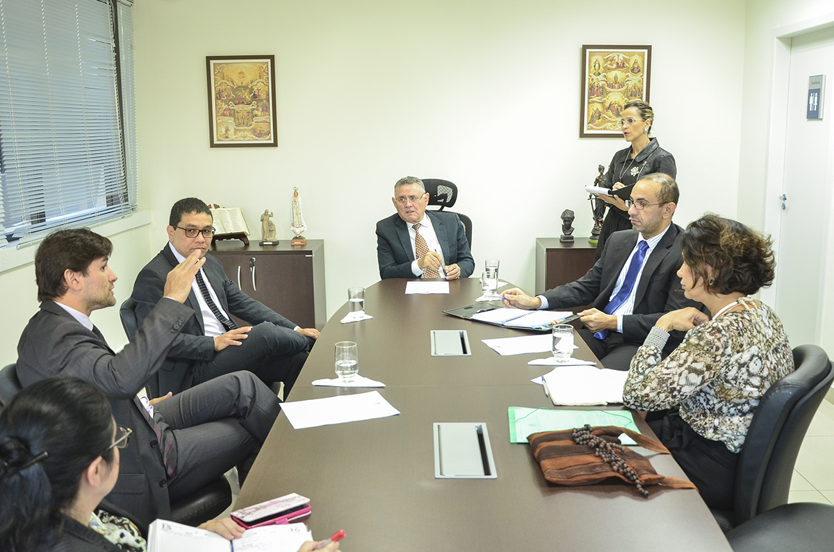 O presidente do Tribunal de Justiça do Acre (TJAC), em exercício, desembargador Francisco Djalma, e o diretor da Escola do Poder Judiciário (ESJUD), desembargador Roberto Barros, receberam, na tarde desta quinta-feira, 16, na sede do TJAC, em reunião de trabalho, o juiz federal David Pardo, representante da Escola Nacional de Formação de Magistrados (ENFAM).