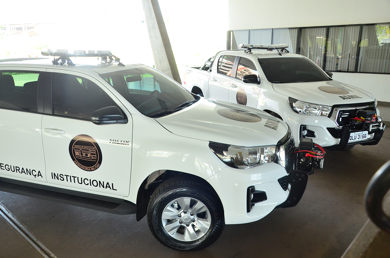 A Administração do Tribunal de Justiça do Acre (TJAC) realizou a entrega oficial de duas caminhonetes Toyota, tipo Hillux, para Assessoria Militar do Poder Judiciário (Asmil), nesta terça-feira (25). Os veículos ajudarão na segurança institucional da Justiça Acreana, serviço que é realizado pela Polícia Militar do Estado do Acre e agentes de segurança.