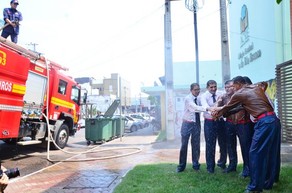 Após a solenidade, os militares promovidos participaram do tradicional banho com a água do caminhão de incêndio, conhecido batismo.