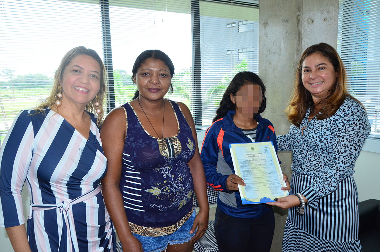 Ana Paula e sua filha, uma adolescente de 15 anos de idade, tiveram suas expectativas atendidas nessa terça-feira, 6, ao receberem, juntas, a nova Certidão de Nascimento da infante, na sede do Tribunal de Justiça do Estado do Acre. O documento foi retificado e entregue pelas mãos da corregedora-geral da Justiça, desembargadora Waldirene Cordeiro.