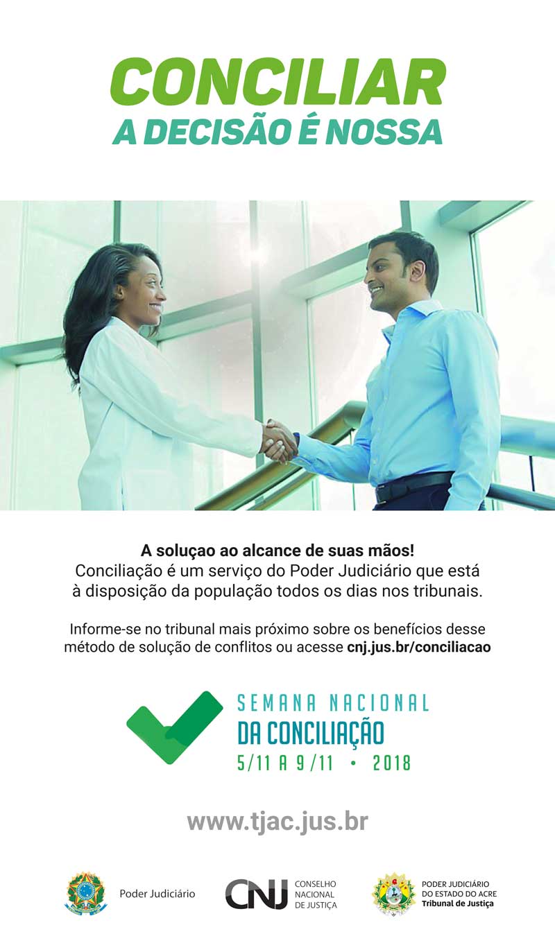 Mais de 50 unidades judiciárias estão envolvidas com a programação da Semana de Conciliação, que será promovida em todo o Estado do Acre. O evento é uma iniciativa do Conselho Nacional de Justiça (CNJ) e será realizado simultaneamente em todo país.