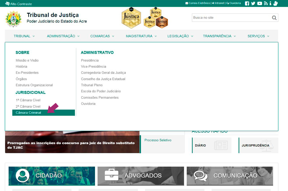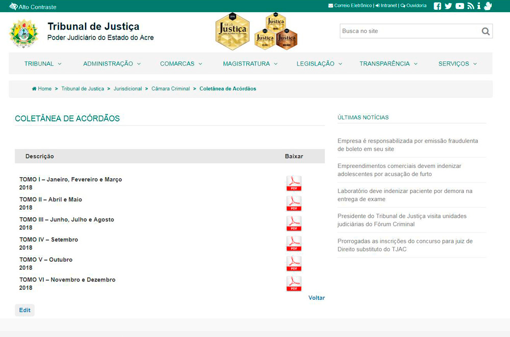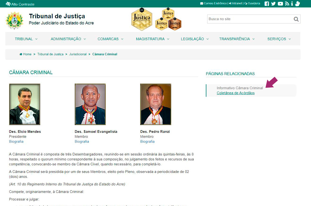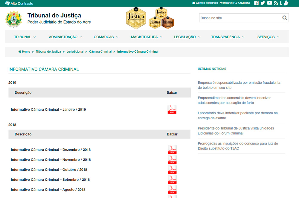 Também disponível no site do TJAC, a Câmara Criminal do Tribunal de Justiça do Acre conta com um informativo mensal sobre Decisões proferidas pelo Órgão Colegiado.