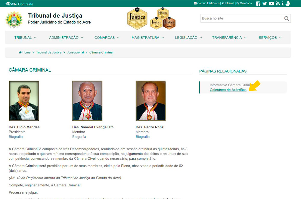 Confira o passo a passo para acessar a Coletânea de Acórdãos 2018 e o Informativo mensal da Câmara Criminal: