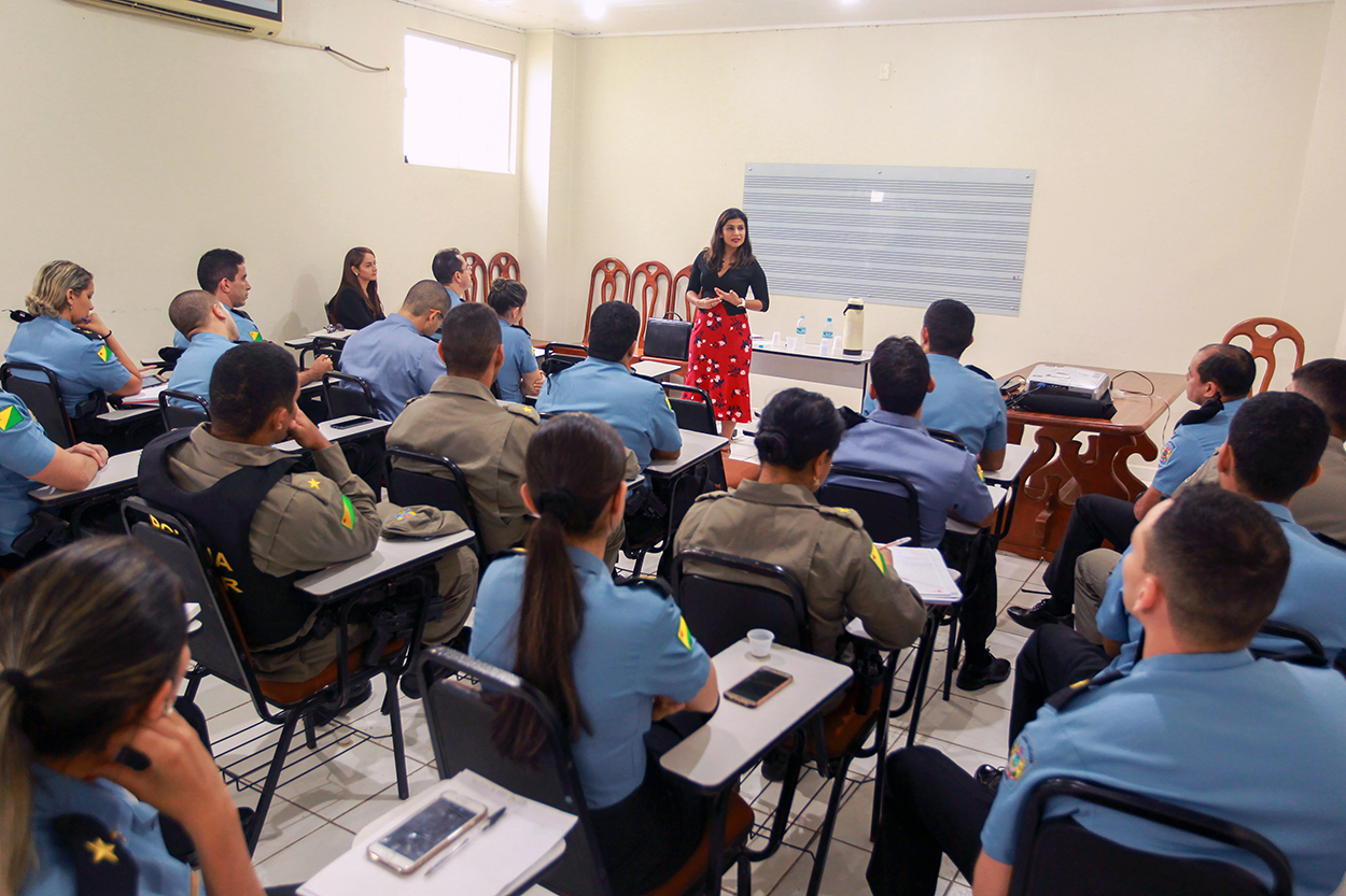 No treinamento, os policiais receberam informações da magistrada de como devem proceder quando a Patrulha Maria da Penha for acionada.