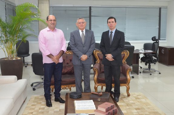O presidente do Tribunal de Justiça do Estado do Acre (TJAC), desembargador Francisco Djalma, e o vice-presidente da Corte, desembargador Laudivon Nogueira, em agenda de trabalho, receberam nesta terça-feira, 19, na sede do Poder Judiciário Acreano, o prefeito do município de Plácido de Castro, Gedeon Barros.