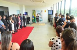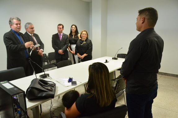 O momento foi registrado pelo juiz de Direito, Fernando Nóbrega, e pelo promotor de Justiça, Rogério Voltolini, que estiveram acompanhados do desembargador-presidente, em exercício, Laudivon Nogueira; pela desembargadora Eva Evangelista e a juíza de Direito, Zenair Bueno.
