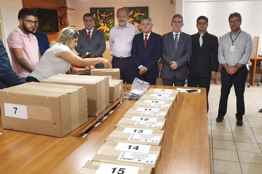 Desembargadores acompanharam o momento da tirada dos envelopes de provas para verificarem as caixas lacradas.