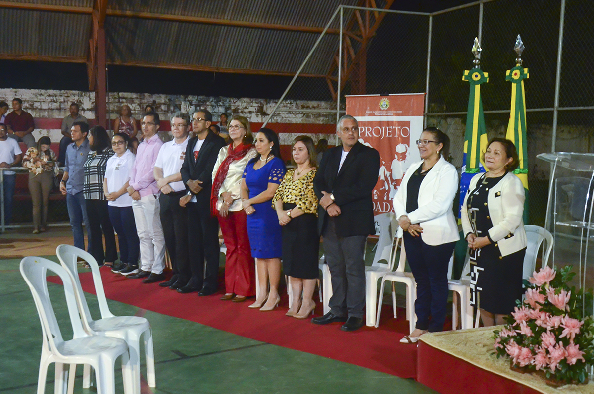 O tradicional Casamento Coletivo, promovido pelo Tribunal de Justiça do Acre (TJAC), reuniu mais de 60 casais na sexta-feira, 17, na quadra esportiva da Escola Lourival Pinho. A cerimônia nupcial encerrou as atividades do Projeto Cidadão – Caravana da Cidadania, ação social promovida por meio de esforço conjunto entre as instituições que compõem o Sistema Judiciário Estadual: TJAC, Ministério Público do Estado do Acre (MPAC) e Defensoria Pública do Acre (DPAC).