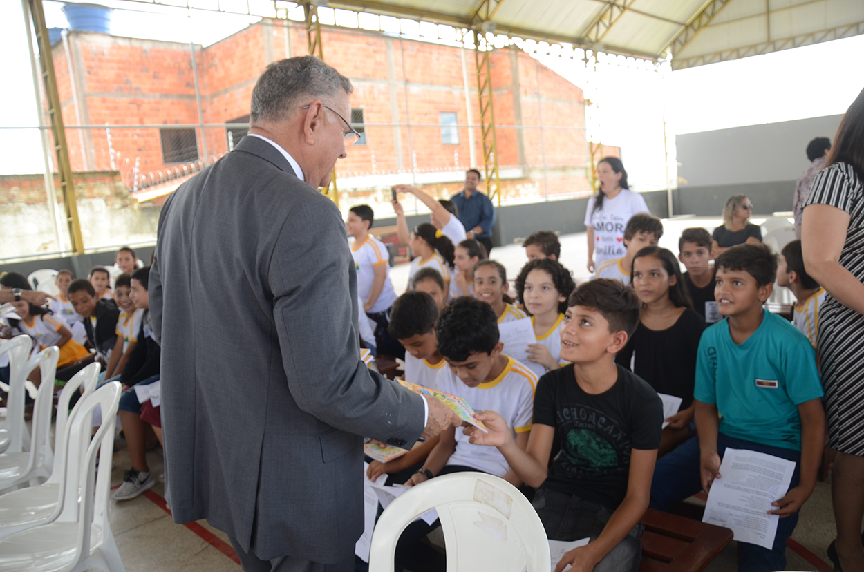 O desembargador-presidente Francisco Djalma saudou a comunidade escolar e assinalou a importância da ação para o próprio Poder Judiciário, uma vez que visa educar as futuras gerações já no início da vida escolar.