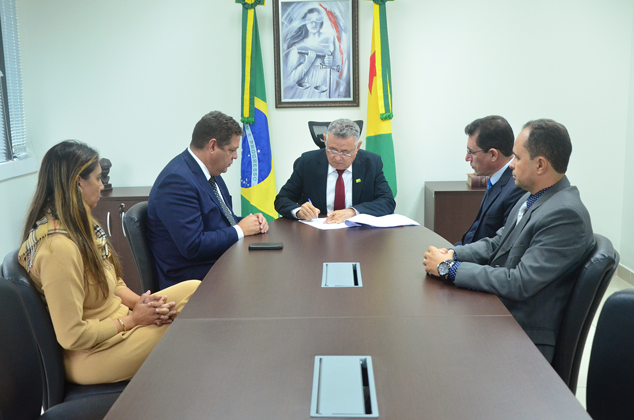 O presidente do Tribunal de Justiça do Acre (TJAC), desembargador Francisco Djalma, recebeu o governador, em exercício, Wherles Rocha, nesta segunda-feira, 13, em seu gabinete, no prédio-sede. Na ocasião, foram assinados alguns termos de cooperação para a continuidade de parcerias entre as duas instituições.