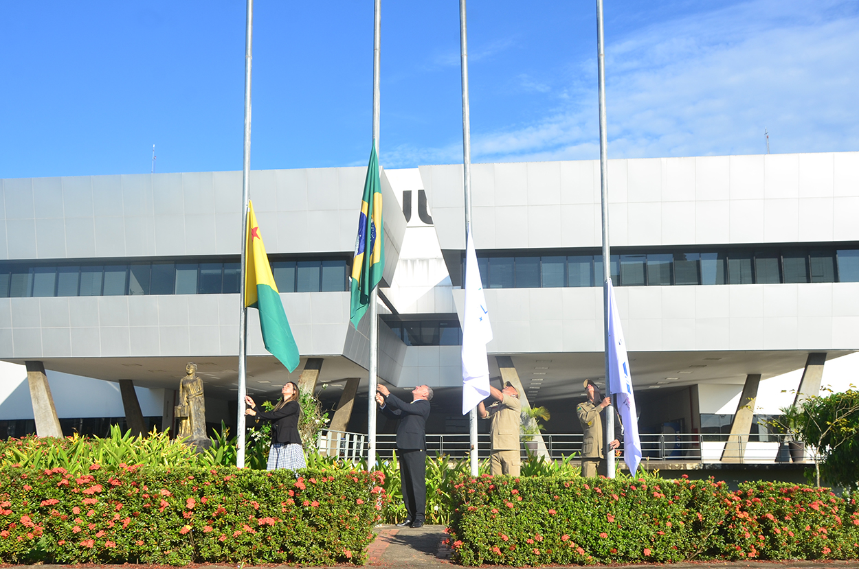 Cerimônia de hasteamento de bandeiras aconteceu na manhã desta segunda-feira, 17, na sede do Poder Judiciário Acreano.