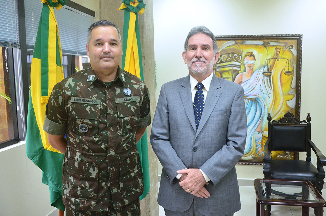 Na última sexta-feira, 07, o presidente da 1ª Câmara Cível do Tribunal de Justiça do Estado do Acre (TJAC), desembargador Luís Camolez, recebeu a visita do subcomandante da Academia Militar das Agulhas Negras (Aman), coronel do Exército Brasileiro Luis Henrique. Ambos participam das festividades do aniversário de 50 anos do 7° Batalhão de Engenharia de Construção (7° BEC) no Estado do Acre.