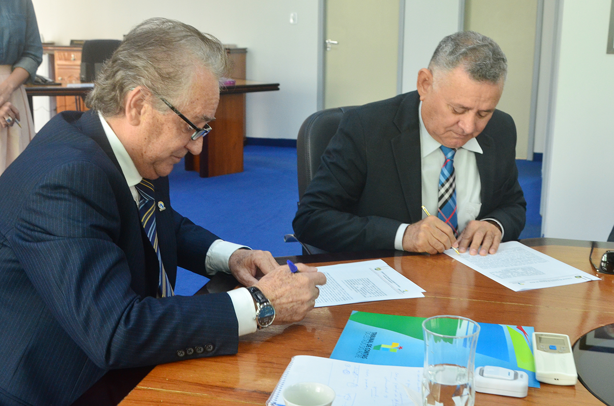 O presidente do Tribunal de Justiça do Estado do Acre (TJAC), desembargador Francisco Djalma, e o presidente do Tribunal de Contas do Estado do Acre (TCE-AC), conselheiro Cristóvão Messias, assinaram, na manhã desta quinta-feira, 27, Termo de Cooperação Técnica objetivando a realização de eventos de capacitação, aperfeiçoamento e qualificação profissional para servidores públicos magistrados e conselheiros.