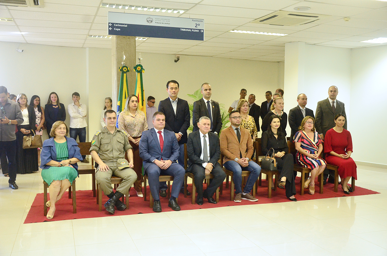 Para o ato, compuseram o dispositivo de honra, além do desembargador-presidente do TJAC, a decana da Corte de Justiça Acreana, desembargadora Eva Evangelista, a supervisora do Grupo de Monitoramento do Sistema Carcerário (GMF), desembargadora Denise Bonfim, a presidente do Tribunal Regional Eleitoral (TRE), desembargadora Regina Ferrari, os juízes-auxiliares da Presidência do TJAC, Lois Arruda e Andrea Brito, o presidente do IAPEN, Lucas Gomes, que representou o Governo do Estado, o secretário-geral do MPAC, promotor de Justiça Rodrigo Curti, a defensora pública geral, Roberta Caminha, o tenente-coronel Atahualpa, representando a PMAC.