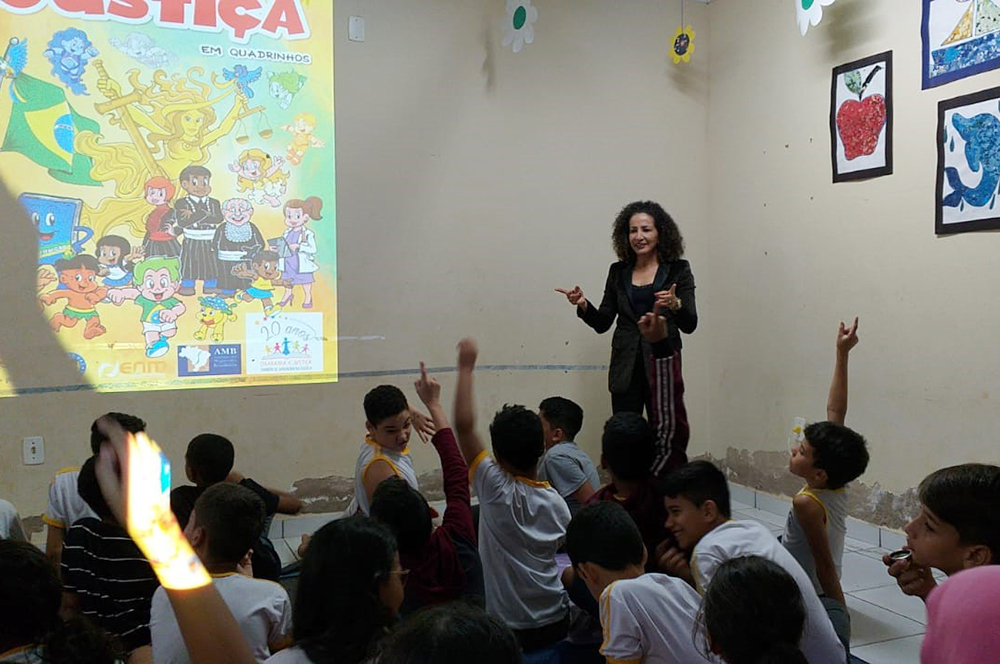 Em uma apresentação dinâmica e participativa, a magistrada Maha interagiu com os alunos da Escola Francisco Oiticica. O conhecimento virou um jogo e a participação das crianças dinamizou o aprendizado sobre o Poder Público.