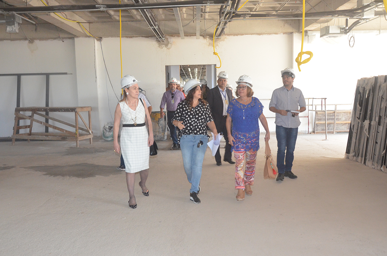 Acompanhadas dos engenheiros e técnicos responsáveis pela edificação e de servidores do TRE, as duas desembargadoras percorreram toda a área em construção, que comporta dois blocos principais: uma ala térrea que abrigará as atividades do Pleno e uma torre que abrigará as atividades administrativas e jurisdicionais, composta de quatro pavimentos, térreo, subsolo e estacionamento.