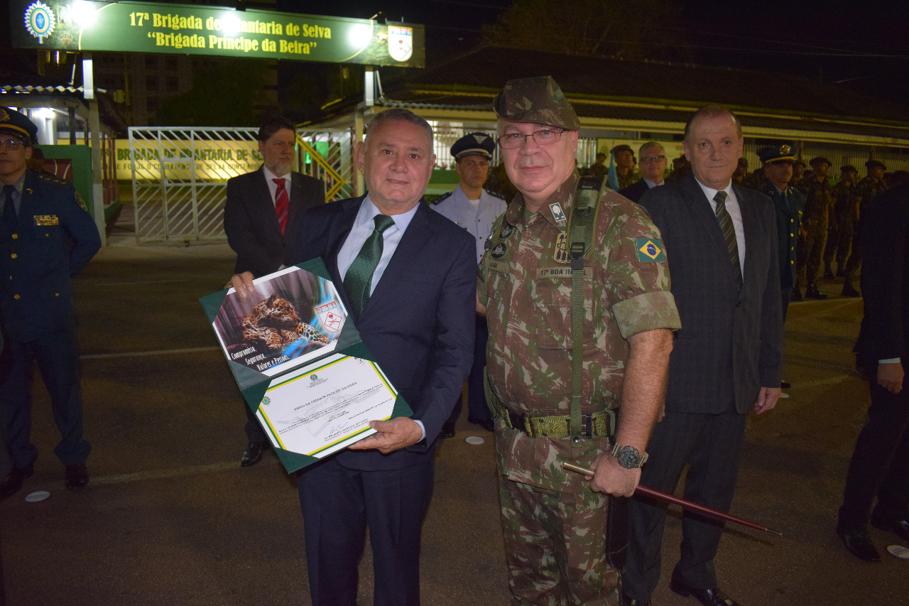 O presidente do Tribunal de Justiça do Estado do Acre (TJAC), desembargador Francisco Djalma, foi uma das personalidades homenageadas durante as comemorações dos 50 anos de instalação da 17ª Brigada de Infantaria de Selva. Ele recebeu o diploma “Amigo da Brigada Príncipe da Beira”.