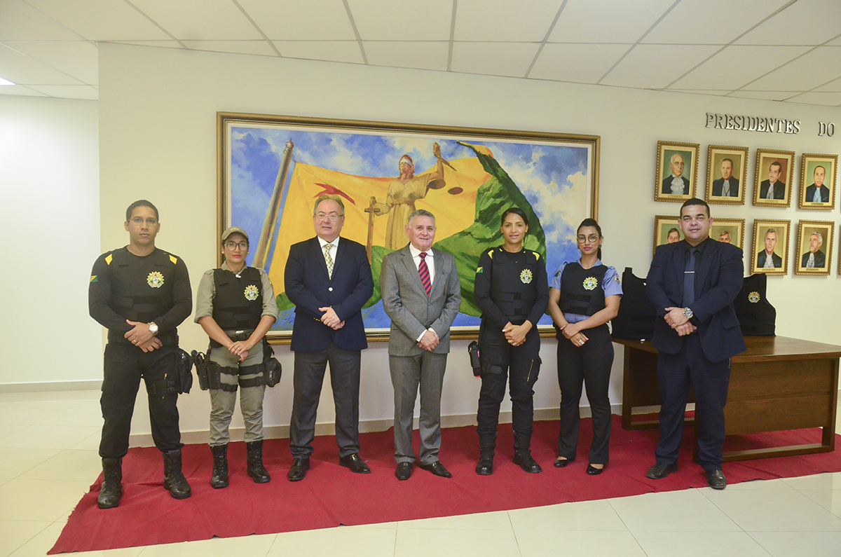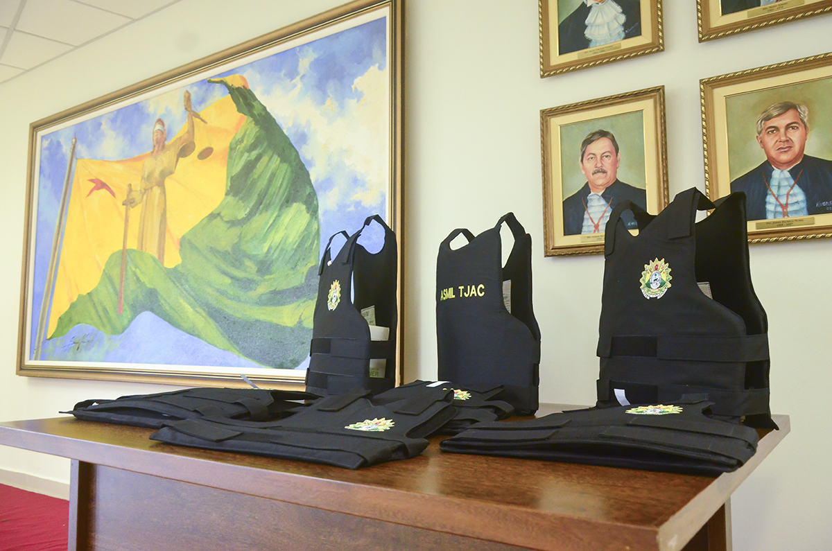 O presidente do Tribunal de Justiça do Estado do Acre (TJAC), desembargador Francisco Djalma, entregou coletes balísticos à Assessoria Militar. A entrega simbólica, feita nesta segunda-feira, 29, ocorreu na Galeria dos Ex-Presidentes do prédio-sede do Poder Judiciário Acreano.