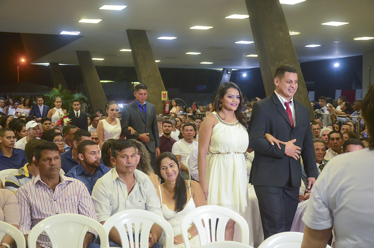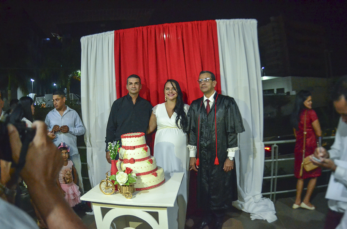 Quem representou os mais novos foi Auricélio Nascimento e Maria Fernanda, que moram juntos há três meses, e Tercia Barbosa e João Valdiro, representaram os mais experientes. Os dois casais foram os primeiros a confirmar o ‘sim’ perante ao juiz de Direito Ednaldo Muniz, celebrador da cerimônia nupcial, que enfatizou os desafios que enfrentados no casamento e a importância do respeito e amor entre os dois.