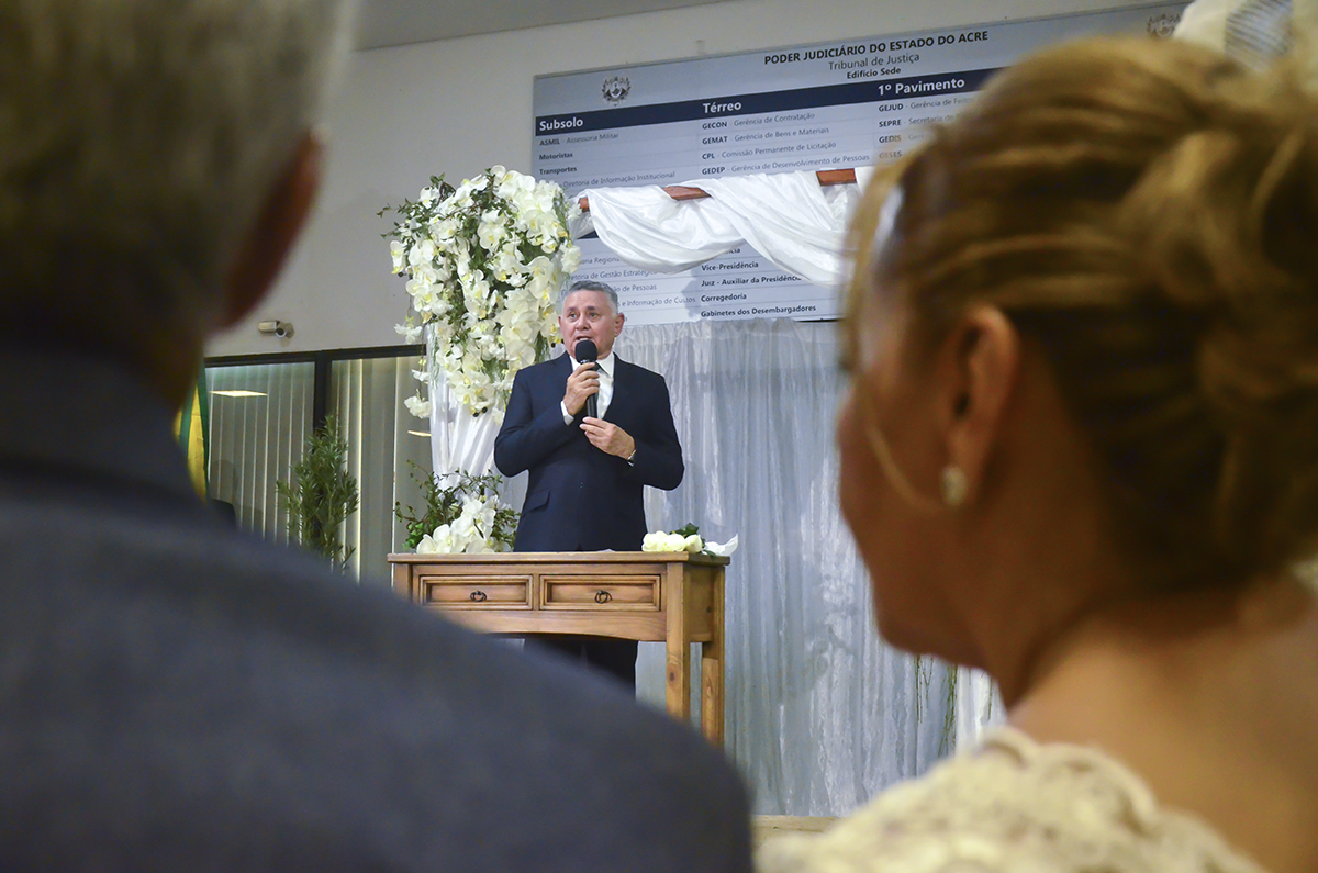 A coordenadora do Projeto Cidadão, desembargadora Eva Evangelista, destacou a gratuidade nos procedimentos para o Casamento Coletivo e salientou que o evento reafirma o compromisso social de justiça e cidadania do Poder Judiciário do Acre.