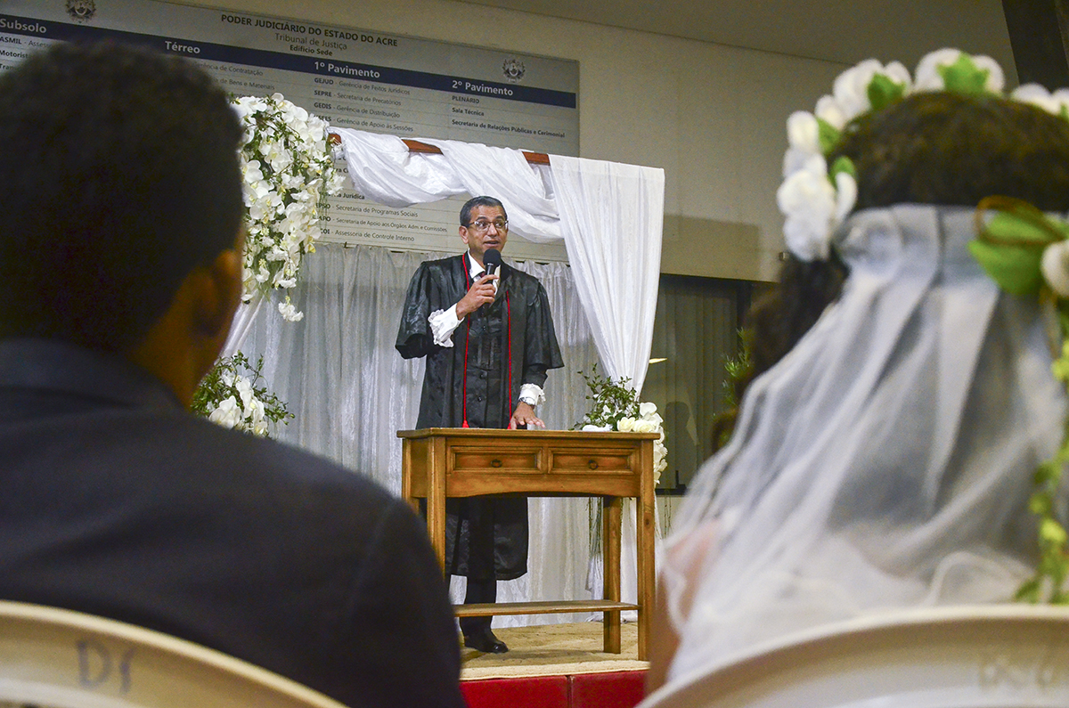 O Tribunal de Justiça do Estado do Acre (TJAC), por meio do Projeto Cidadão, oficializou a união de 291 casais na noite desta sexta-feira, 16. A cerimônia nupcial, pela primeira vez na história, ocorreu na Sede-Administrativa do Poder Judiciário Acreano.