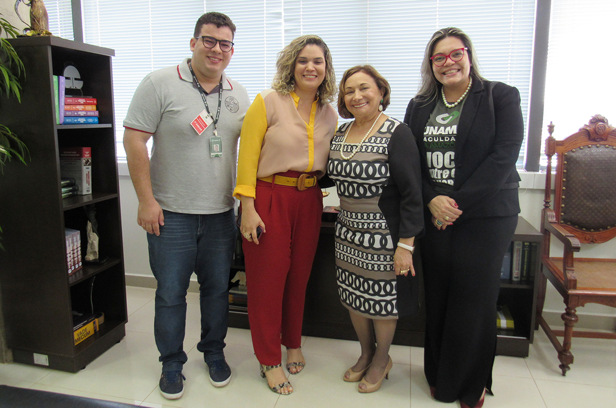 Nesta terça-feira, 27, a coordenadora Estadual das Mulheres em Situação de Violência Doméstica e Familiar do Poder Judiciário do Acre, desembargadora Eva Evangelista, recebeu representantes da Faculdade da Amazônia de Rio Branco (Unama) e da Secretaria de Estado de Justiça e Segurança Pública (SEJUSP), com objetivo de ampliar as parcerias para desenvolvimento de ações de proteção à mulher e cidadania.