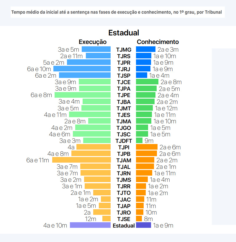 Já a execução processual é considerada a principal fonte de morosidade do Poder Judiciário, nessa etapa ocorre o cumprimento da decisão judicial. O tempo médio nacional foi estipulado em quatro anos e 10 meses. Segundo o comparativo, no Acre, a média é um ano e dois meses.