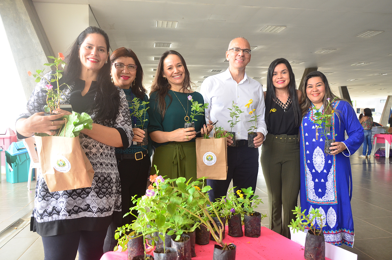As boas práticas de sustentáveis da instituição também foram apresentadas na feira, na qual foram ofertados produtos da Horta Compartilhada. Estavam disponíveis mudas de árvores frutíferas, como ingá, cupuaçu e açaí, também plantas ornamentais e hortaliças, sendo: couve, cheiro verde, coentro, alface, rúcula e chicória, que foram colhidos nesta manhã para presentear os visitantes.