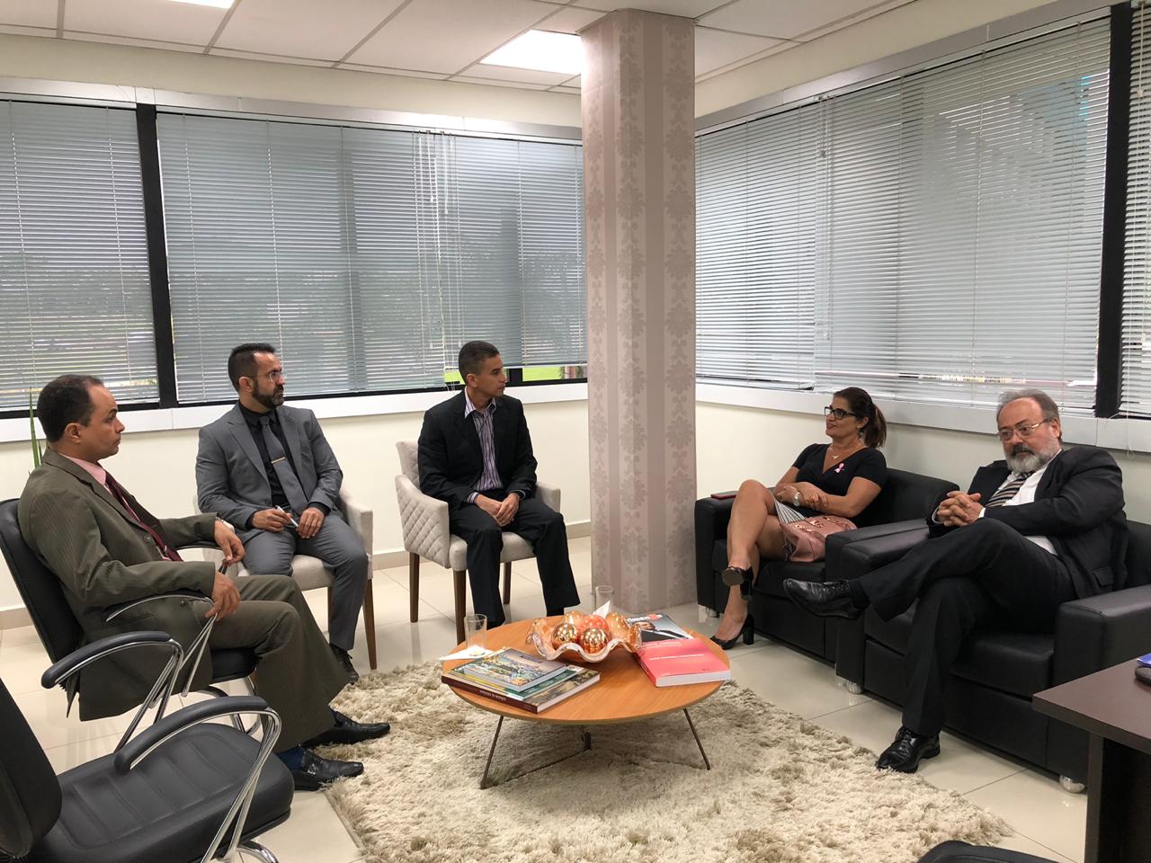 Dialogaram sobre o assunto com o corregedor-geral da Justiça, desembargador Junior Alberto, a secretária de Saúde, Mônica Kanaan, o juiz titular da 1ª Vara do Tribunal do Júri, Leandro Leri Gross, o diretor de Gestão Estratégica do TJAC, Euclides Bastos, e o juiz titular da 1ª Vara da Fazenda Pública e coordenador do Conselho de Saúde do Poder Judiciário, Anastácio Lima de Menezes.