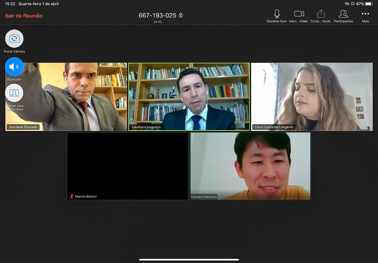 Durante aproximadamente uma hora, os acadêmicos Clara Langevin e Katsumi Sekizawa ouviram relatos dos magistrados sobre iniciativas desenvolvidas por Tribunais de Justiça brasileiros com a utilização de ferramentas de IA e sondaram eventuais dificuldades no gerenciamento dos sistemas pelos gestores.