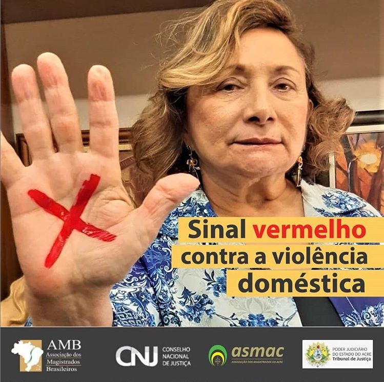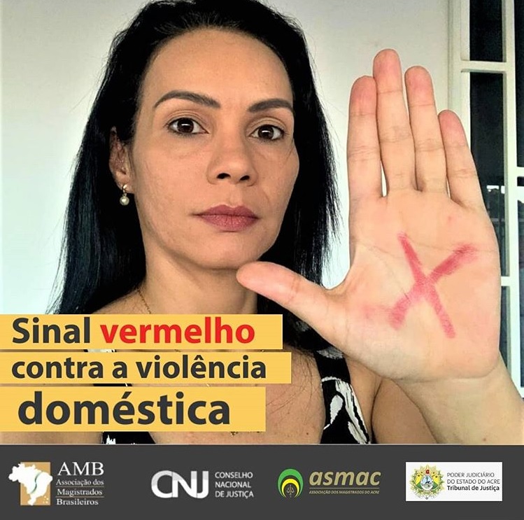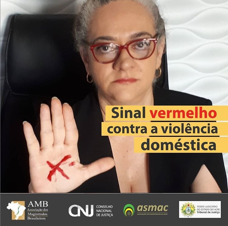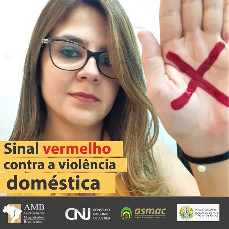 As magistradas do Poder Judiciário do Acre também estão dando esse recado e compartilhando suas fotos com X na mão. Para se juntar a mobilização, é só tirar a foto com o sinal vermelho e disponibilizar online, marcando as páginas @tjacoficial, @asmac_oficial, @cnj_oficial, @magistradosbr e usar a hashtag #sinalvermelho.
