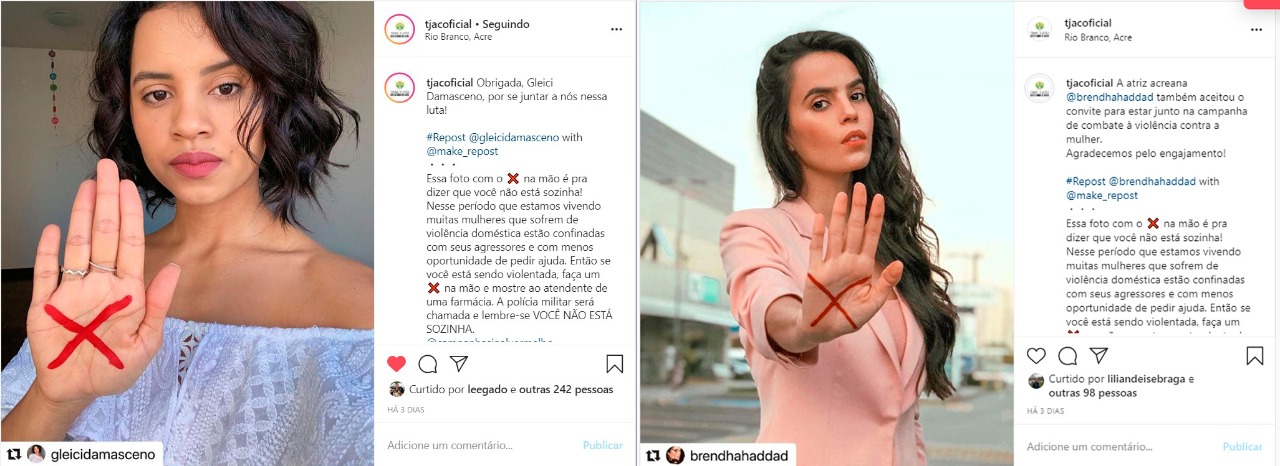 Quem também aceitou o convite do TJAC e Asmac para reforçar a divulgação da campanha foi a acreana Gleice Damasceno, vencedora da 18° edição do reality show Big Brother Brasil, e a atriz acreana Brendha Haddad. Ambas postaram a foto com X na mão em seu perfil no Instagram.