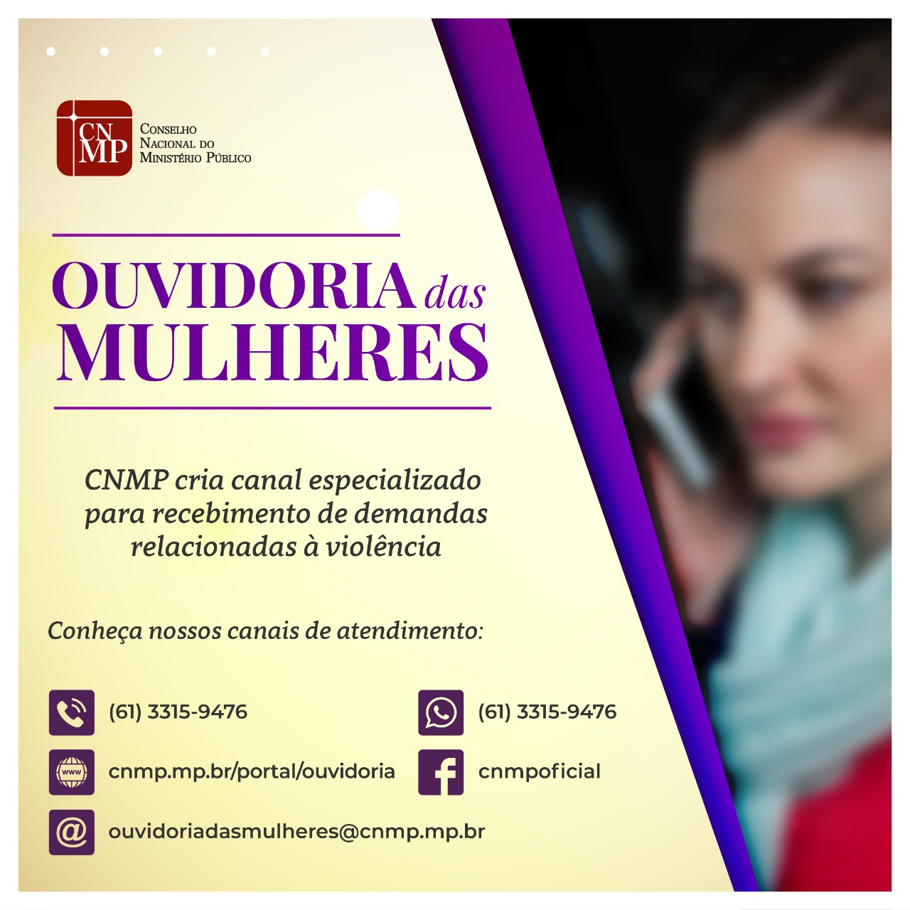 A ouvidoria foi criada no último dia 10 e ela conta com um número de Whatsapp especifico para o recebimento das demandas relacionadas à violência contra a mulher: (61) 3315-9476. Também está disponível o e-mail: ouvidoriadasmulheres@cnmp.mp.br, disponível para o registro de ocorrências.